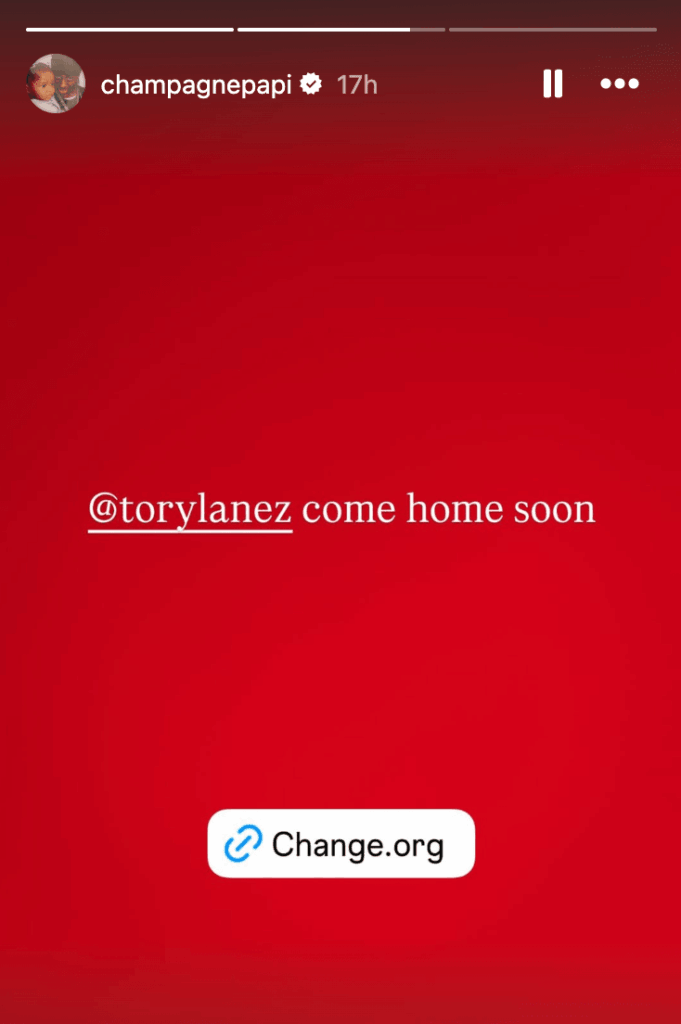 On Friday, Drake posted via his Instagram Stories, “@torylanez come home soon” along with the link to a Change.org petition “Pardon Tory Lanez: Urge Governor Newsom to Correct a Deep Injustice,” which now has over 236,000 signatures.